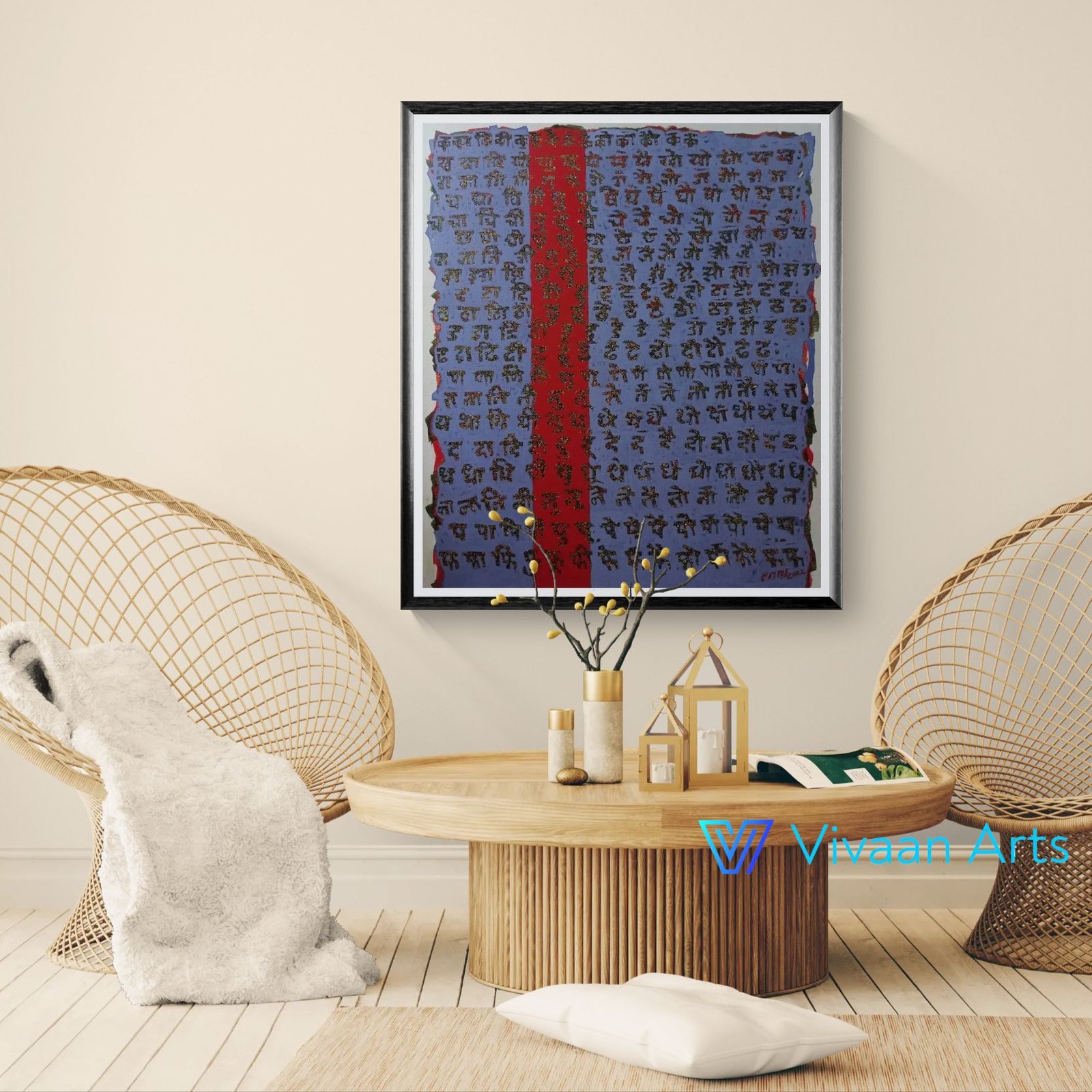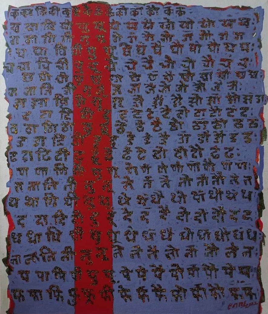 “Mul” is a thoughtful acrylic painting on canvas crafted by renowned Indian artist Navnath Kshirsagar. Measuring 36 × 42 inches, this artwork celebrates the foundation of education through beautifully depicted Marathi alphabets, symbolizing the very first steps of learning. Rich in meaning and cultural depth, Mul captures the innocence, curiosity, and beginnings of a lifelong journey of knowledge.