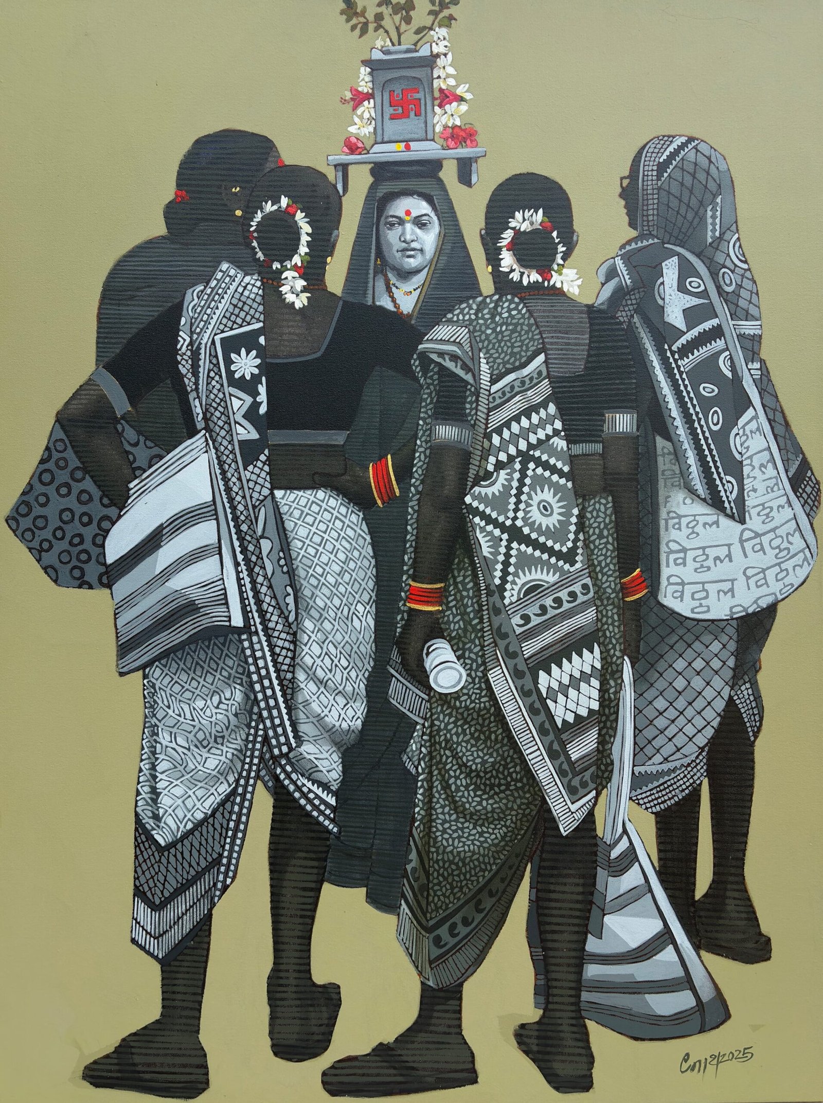 The artwork draws inspiration from the culturally rich region of Wari, known for its agricultural significance and devotional traditions. Kshirsagar’s recent journey to Wari allowed him to absorb its colors, textures, and stories—each reflected delicately through expressive brushstrokes. In Visava, viewers witness a tapestry of agricultural scenes, cultural symbolism, and elements of devotion that reflect the journey towards Vitthal. The painting becomes a gateway to the artist’s experiences and emotions, allowing the observer to experience Wari’s heritage firsthand.